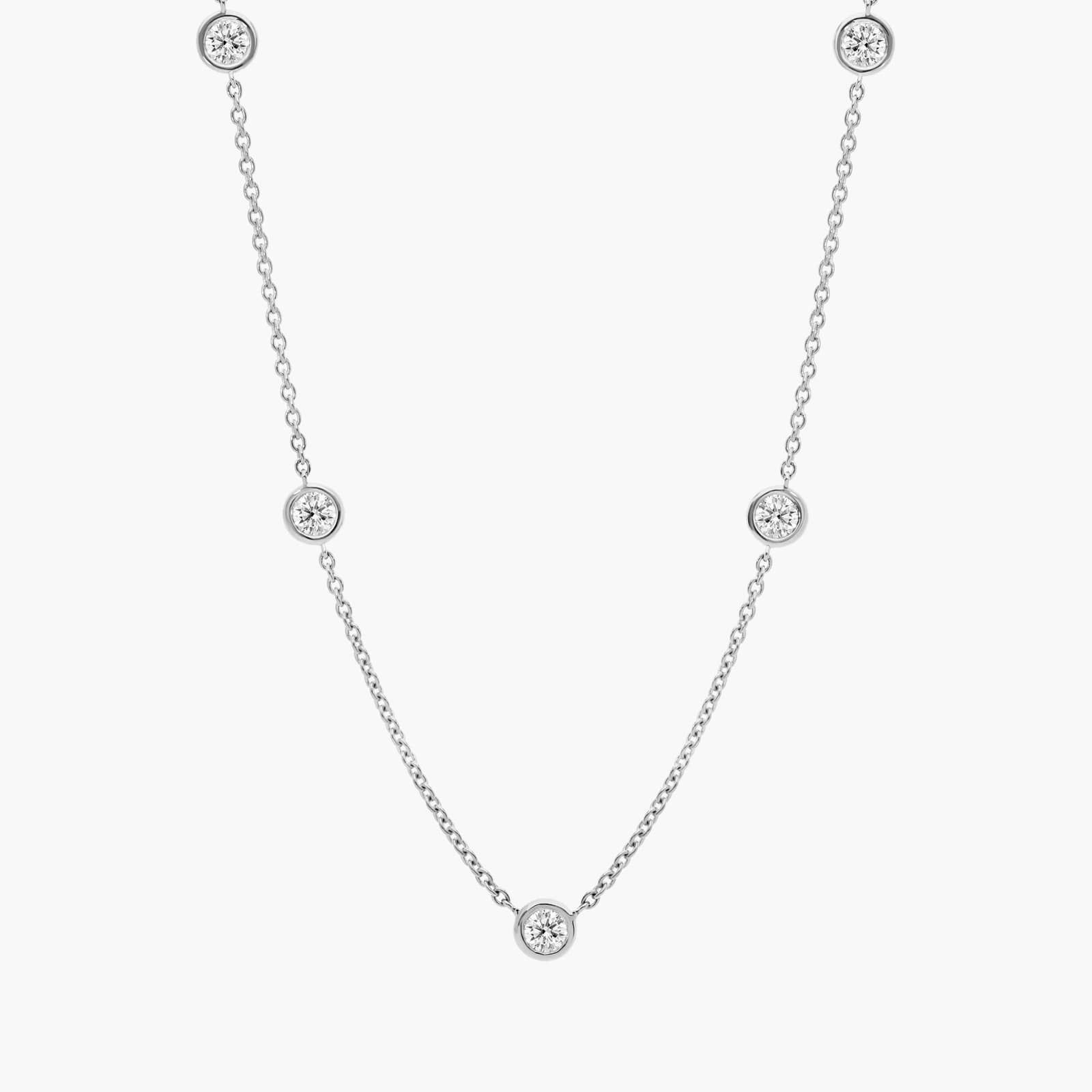 Le collier Luna Diamond Bezel présente cinq diamants ronds cultivés en laboratoire, sertis le long d'une fine chaîne en or 18 carats, disponible en or jaune ou en or blanc. D'un poids total de 1,25 carat, chaque diamant est espacé pour créer du mouvement et de la légèreté sur le décolleté. Sans chichis et pleine de charme, cette pièce apporte une élégance facile qui semble aussi facile à porter qu'elle en a l'air.